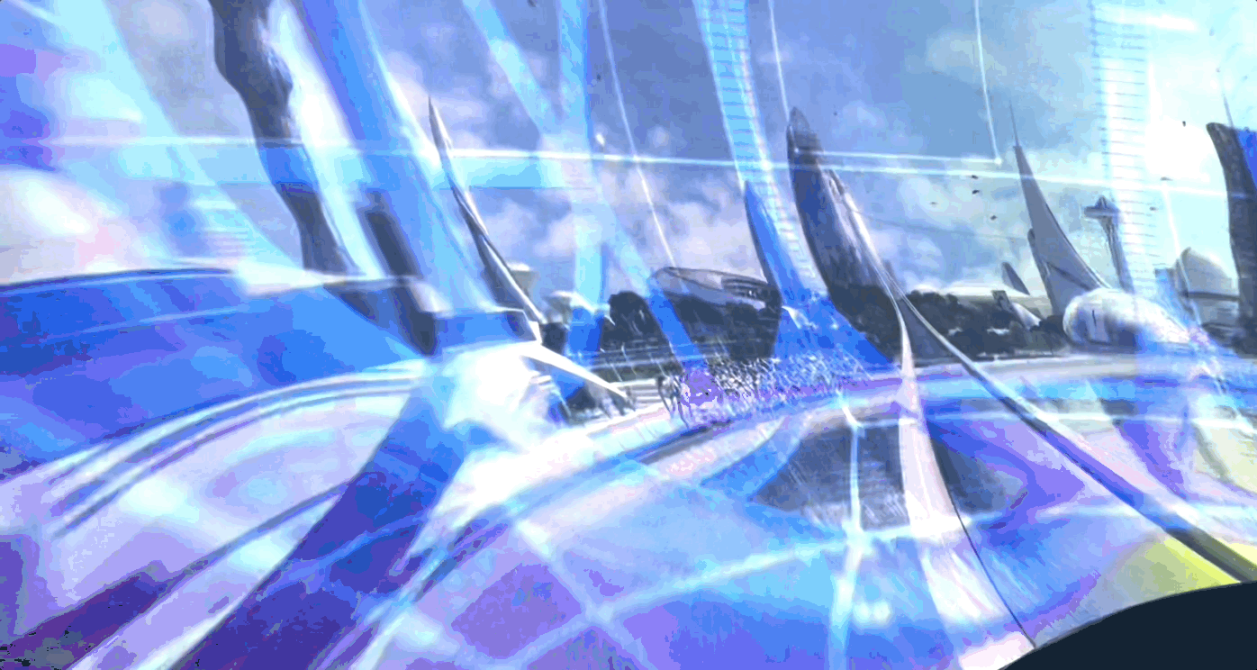 인공지능 기장의 안내에 따라 물과 사막의 도시들을 지나 스페이스 쉽과 도킹한 후 우주관제센터에 도착하게 됩니다.