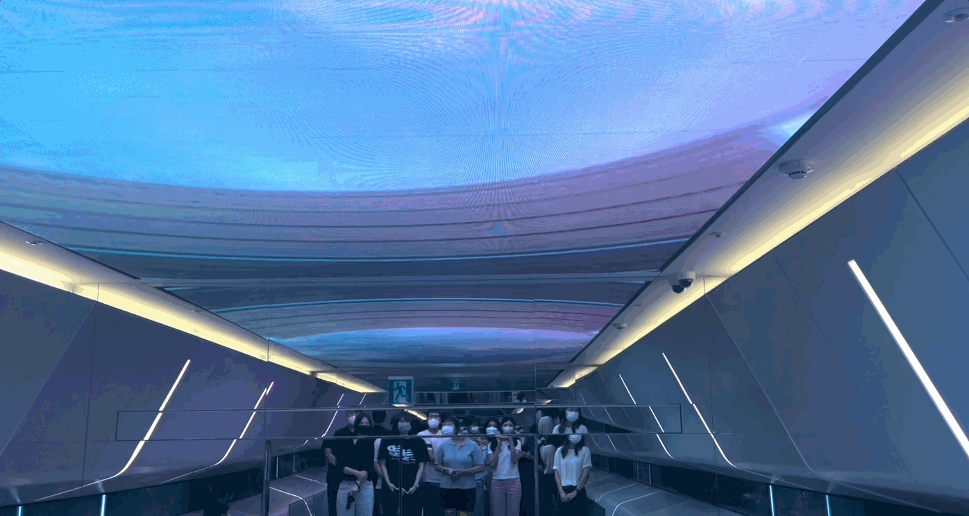 먼저, 하이랜드로 가기위한 하이퍼루프 탑승장으로 이동하기 위해서는 게이트를 통과해야 합니다. 로봇 팔에 모니터가 연결되어 움직이면서 영상이 보여지는데, 퀄리티 무엇.. 엄청난 영상 퀄리티를 자랑하면서 게이트가 열리면 에스컬레이터를 타고 입장합니다!