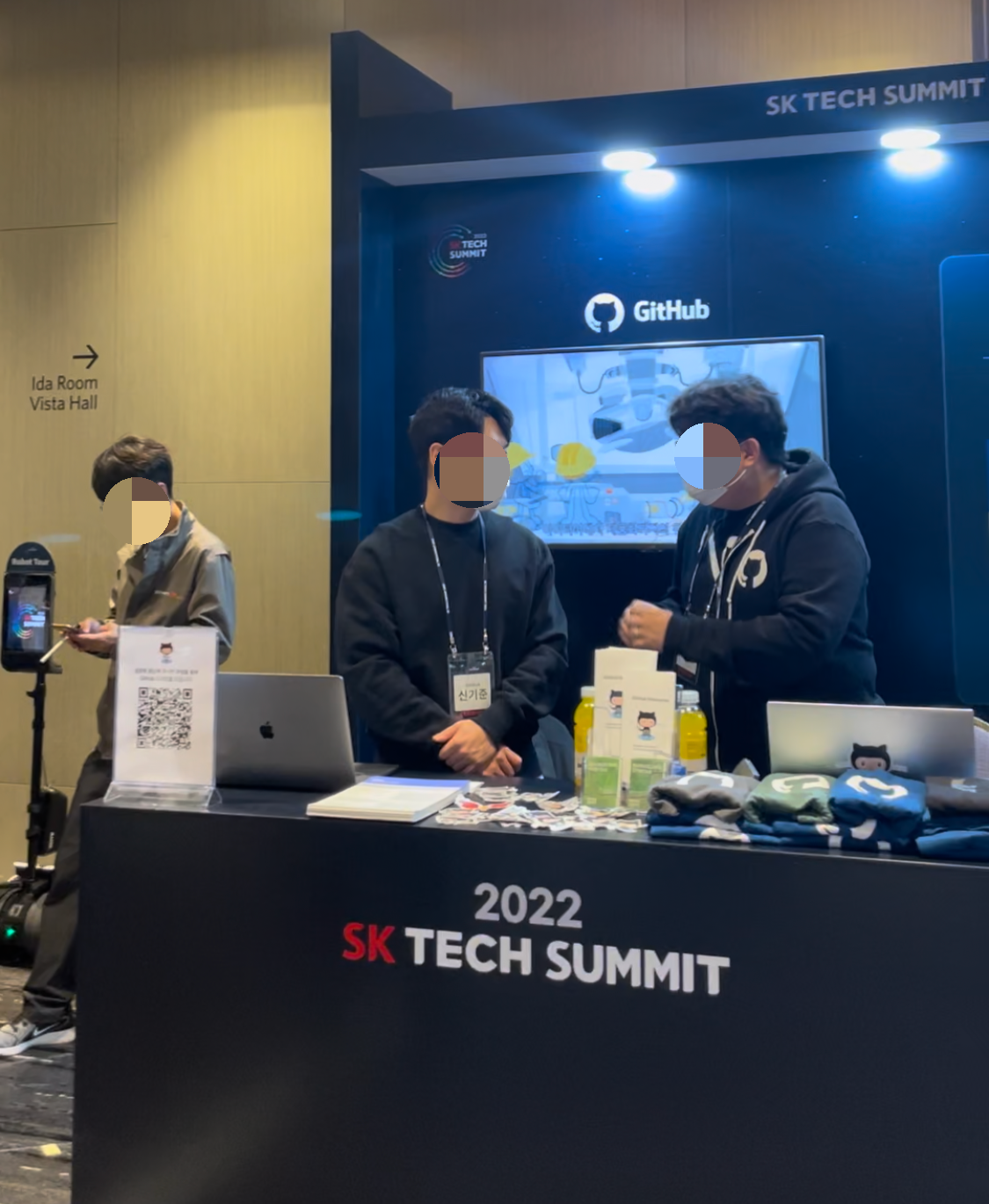깃헙 부스 앞에 깃헙 티셔츠 있는 거 보이시나요? 처음 보자마자 너무 갖고싶다..... 했는데 당첨되어서 너무너무너무 행복했어요ㅜㅜㅋㅋ