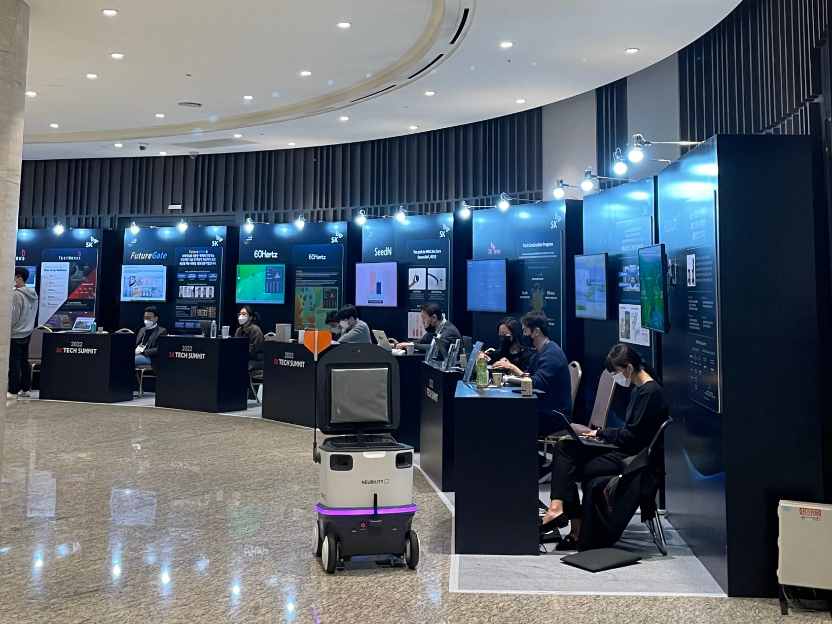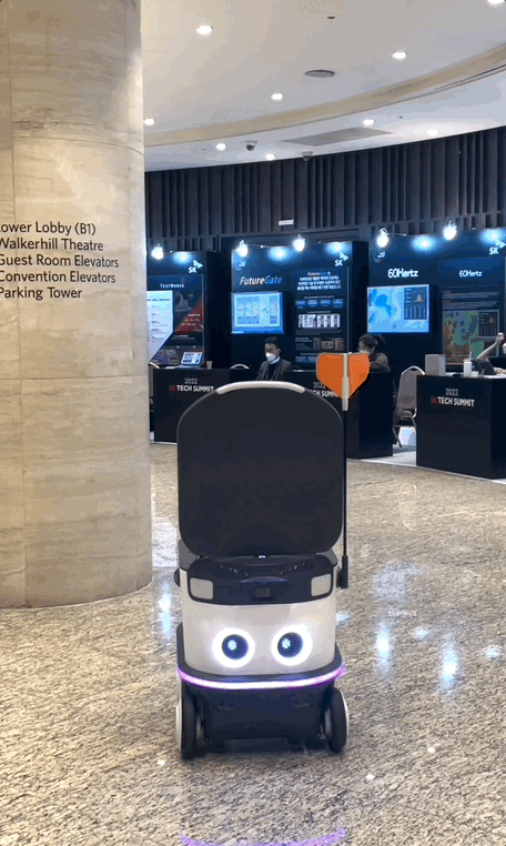 이번 여름에 LA에서 뉴비같은 배달로봇을 본 적이 있는데 정말 정말 신기했었거든요! 요즘 배달비 장난없어서, 우리나라도 어서 배달로봇이 상용화되었으면 좋겠다.. 생각했었는데, 이번 SK 테크 써밋에서 직접 가까이서 보니까 더더 길에서 볼 수 있는 날이 빨리 왔으면 좋겠다고 생각했어요!