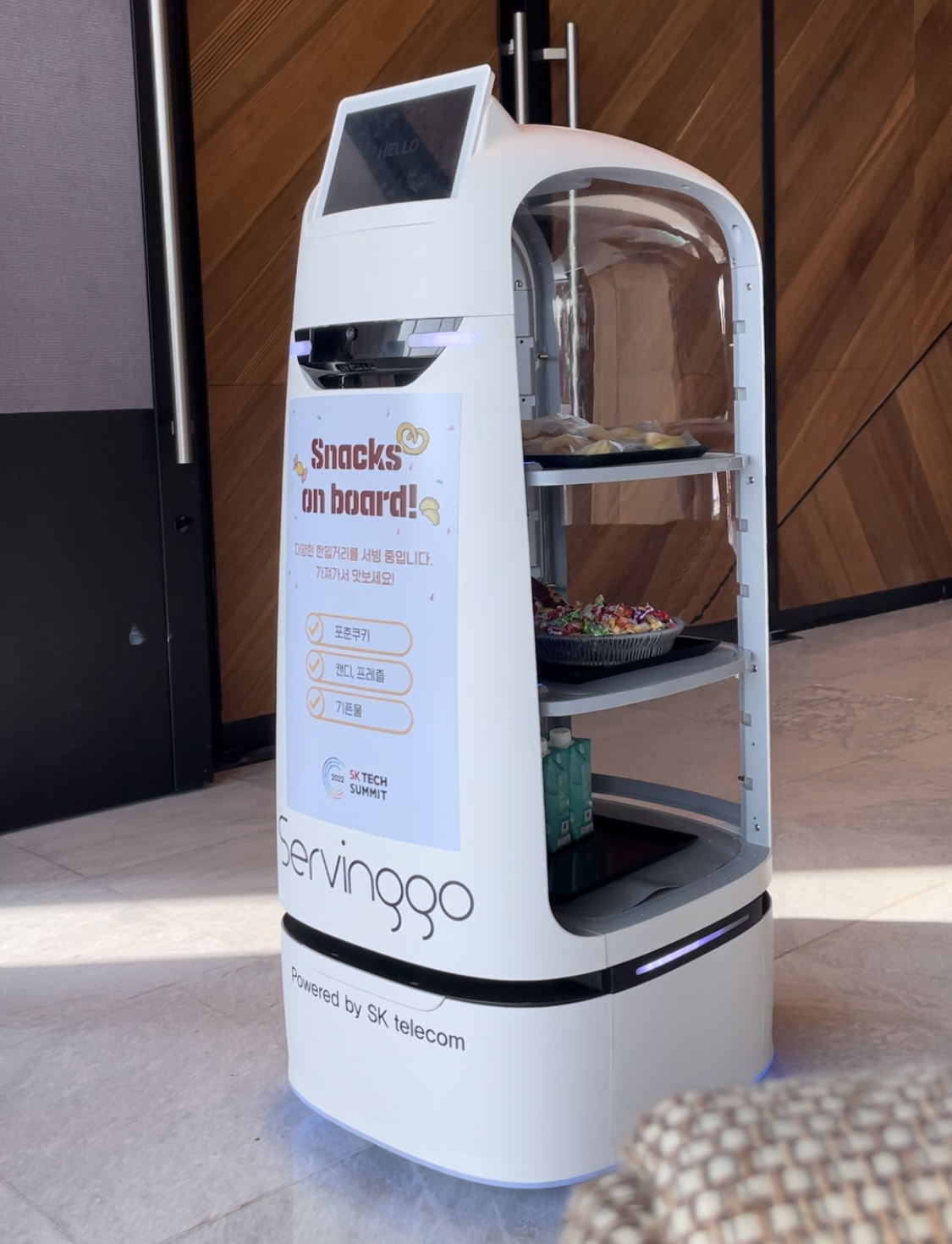 본격적으로 행사장 들어가기 전에도 간식과 손소독제, 물 등을 가져갈 수 있게 서빙해주는 서빙로봇이 있더라구요!