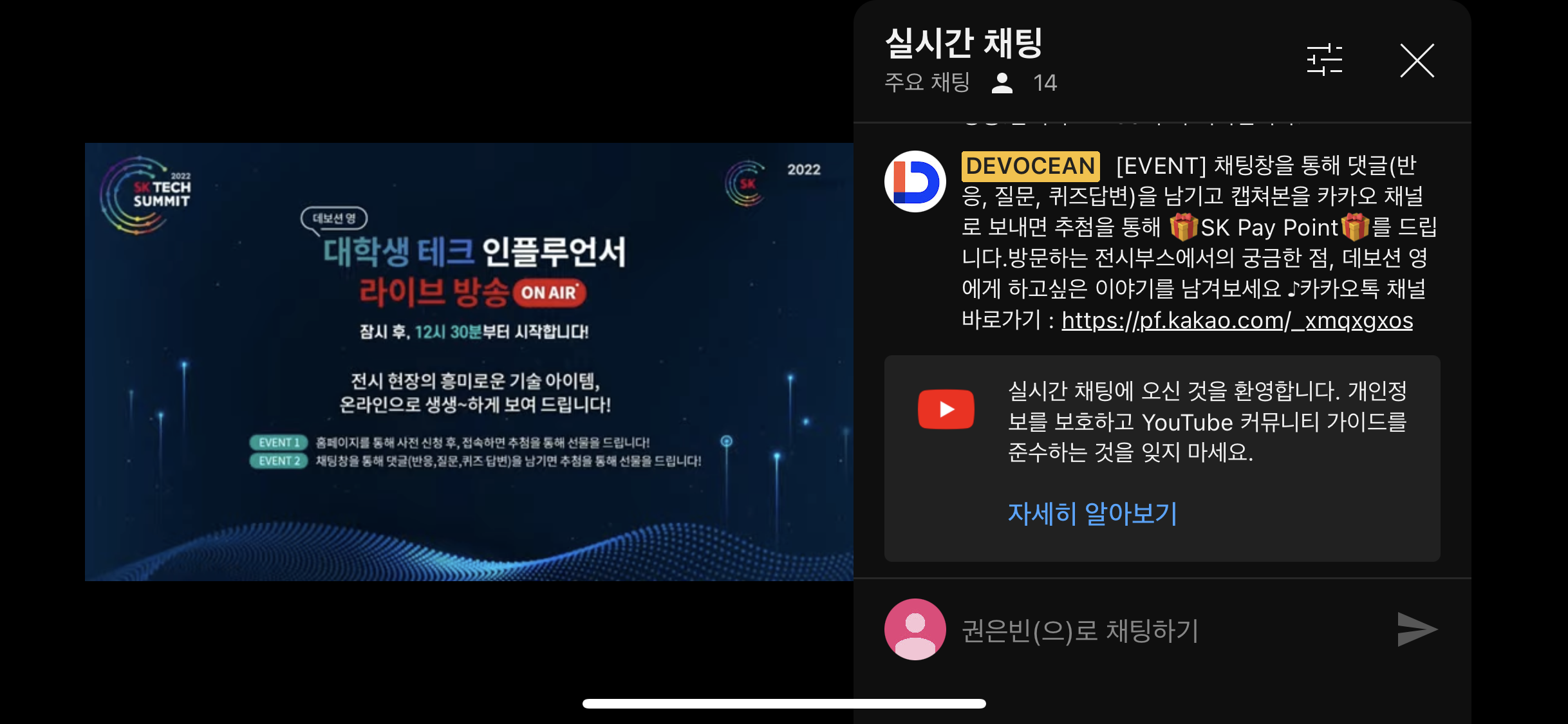 바로 데보션 영이 진행하는 테크써밋 부스 투어 라이브 방송을 진행하기 위함이었습니다!