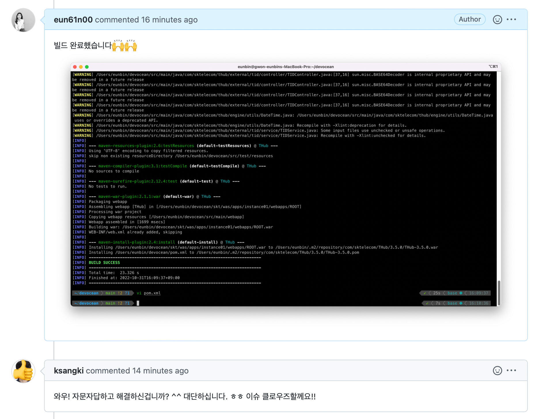데보션 활동 중에 제일 기억에 남고 많이 배운 활동을 꼽으라면 당연히 코드리뷰가 아닐까 싶습니다. 학기 중이라.. 사실 많은 시간을 들여서 여기저기 찾아보고 깊게 공부는 못했지만, 주어진 미션 해결해나가면서 뿌듯하고, 신기하고 또 실제 배포되는 서비스를 빌드해보고 코드까지 들여다 볼 수 있던 경험이었습니다.