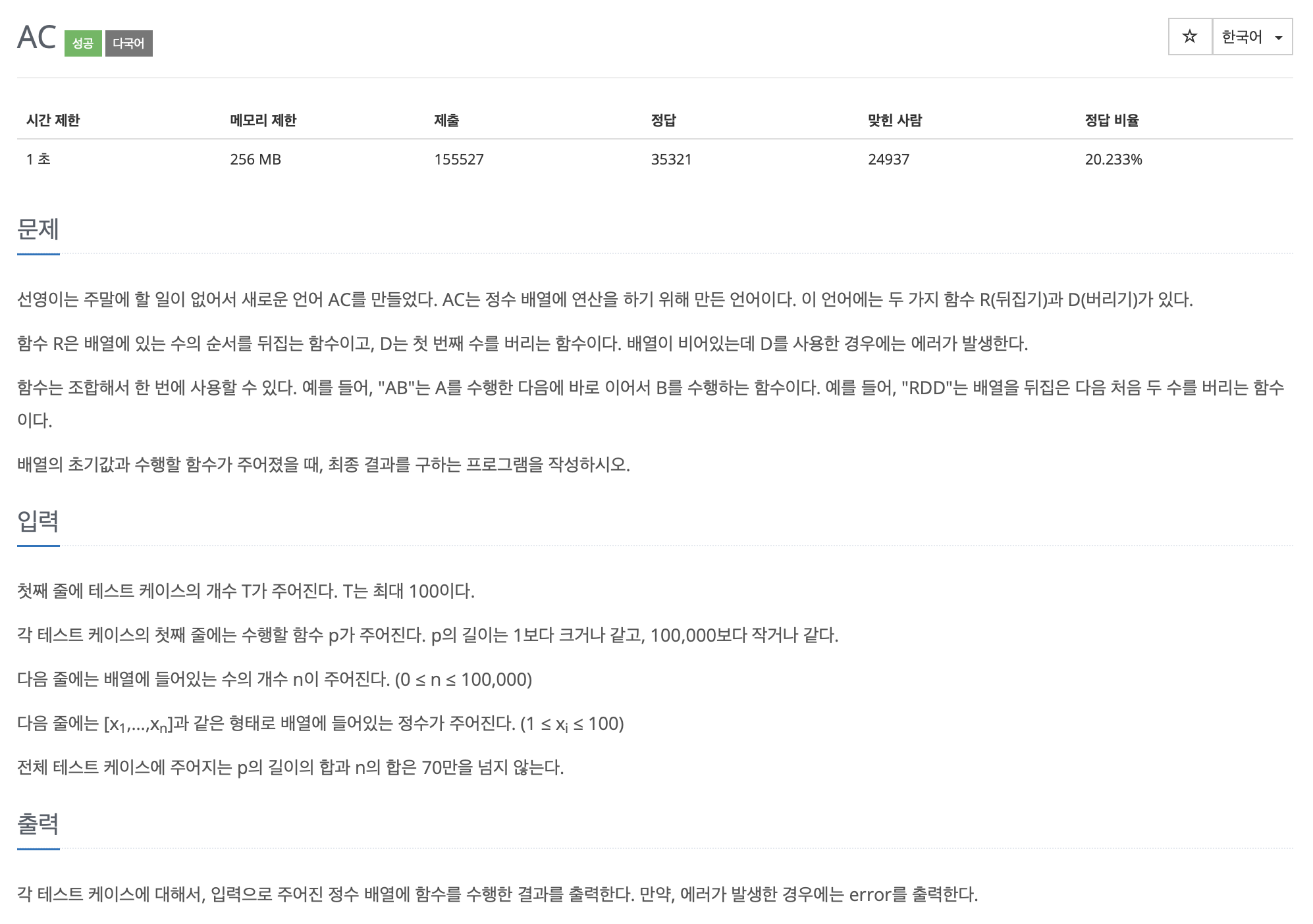 # boj 5430 AC