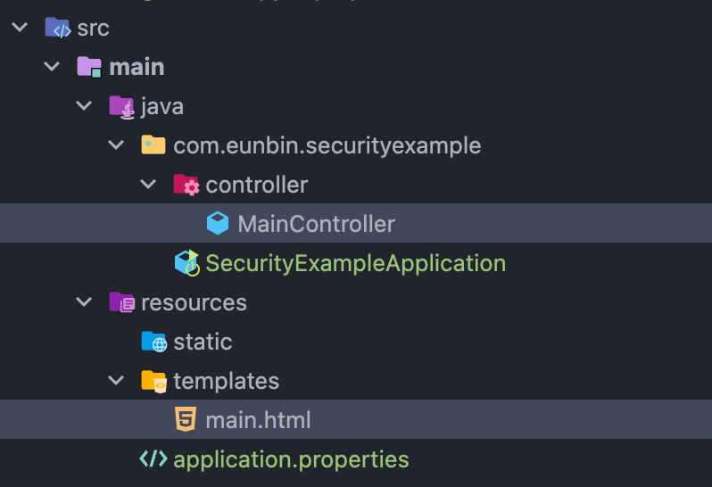 간단한 테스트용 메인페이지 생성을 위해 MainController.java와 main.html 파일을 생성합니다.