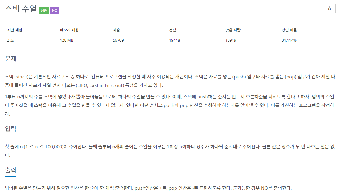 - count가 data에 도달해서 while문을 빠져나왔을 때, stack에 쌓인 최상위노드가 내가 쌓으려고 하는 data 값인지 확인하고 맞으면 result에 '-'를 집어 넣고, stack의 최상위 노드를 빼내기(pop()) → Last In Firtst Out