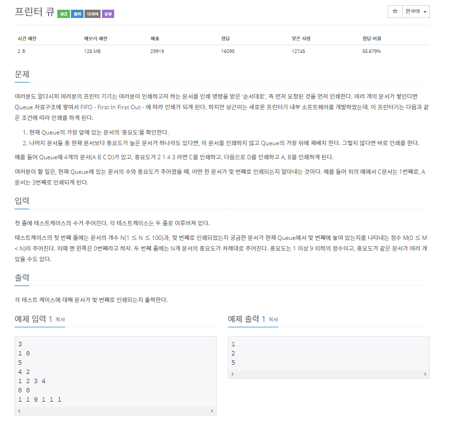 문제 유형: 큐, 구현, 그리디